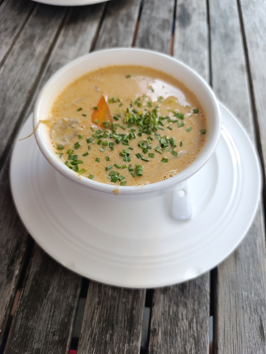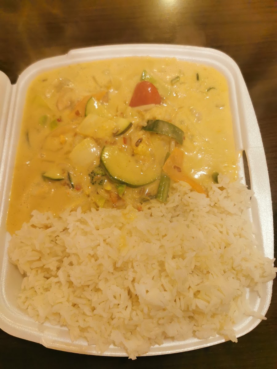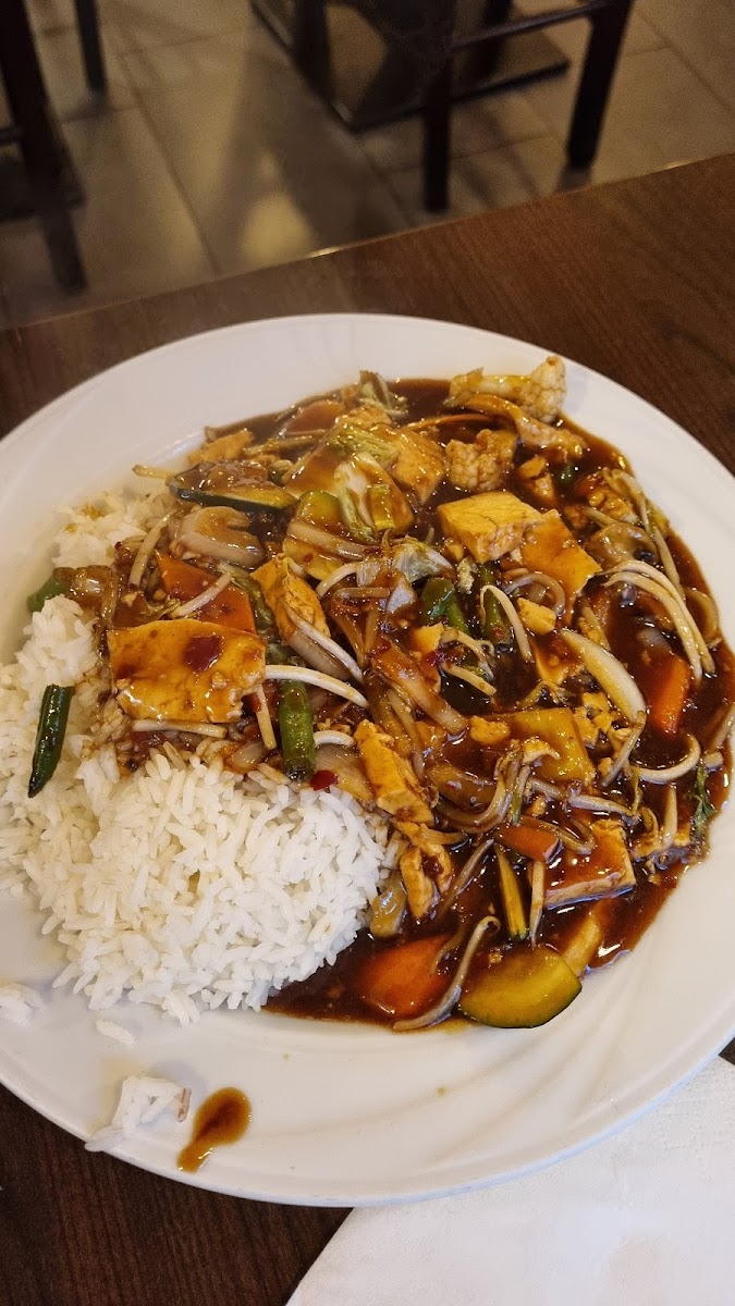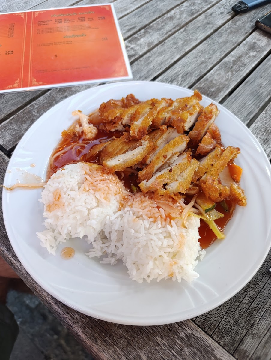 Very, very tasty asian food - Chinese and Thai food. We ordered Tom Yum - that was delicious, and #41 rice with vegetables with chicken (paniert) and #61 rice, vegetables in Rote-Thai-Curry with Ente (paniert) Thai dish we liked more than Chinese. The only minus - only cash, no cards accepted (